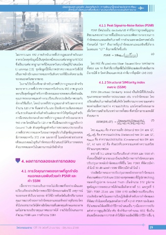 4. ผลการทดลองและการทดสอบ ปรับปรุงภาพหลังก�าจัดหมอกที่ดีขึ้น โดย PSNR ที่ดีควรมีค่า