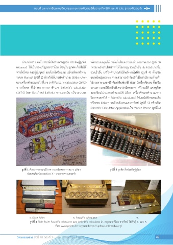 รูปที่ 4 Slide Ruler Pascal’s calculator และ Leibniz’s calculator (ก. อนุเคราะห์โดย ชาคริตฬ์ ไม้พันธุ์ ข. และ ค.