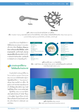 เช่น ผนังภายในอาคาร ผนังตกแต่ง และ รูปที่ 3 อิฐไมซีเลียม (Myco-bricks)