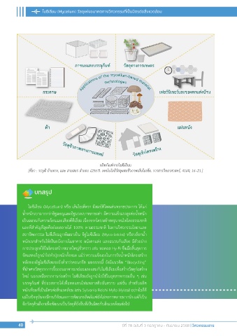 ใหม่ นอกเหนือจากงานก่อสร้าง ไมซีเลียมยังถูกน�าไปใช้ในอุตสาหกรรมอื่น ๆ เช่น