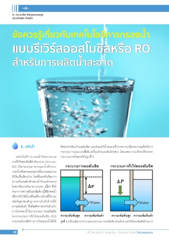 1. บทน�า ทิศตรงกันข้ามกับออสโมซิส และส่งผลให้น�้าสะอาดที่ปราศจากเกลือสามารถผลิตได้จาก
