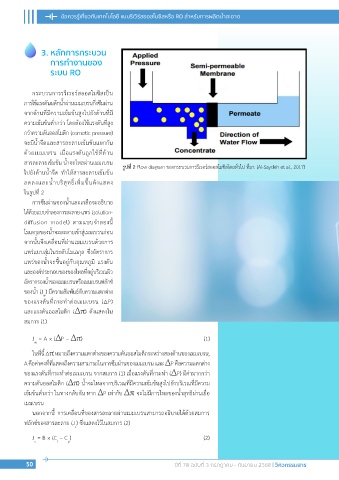 สารละลายเข้มข้น น�้าจะไหลผ่านเมมเบรน รูปที่ 2 Flow diagram ของกระบวนการรีเวอร์สออสโมซิสโดยทั่วไป ที่มา: (Al-Saydeh et al., 2017)