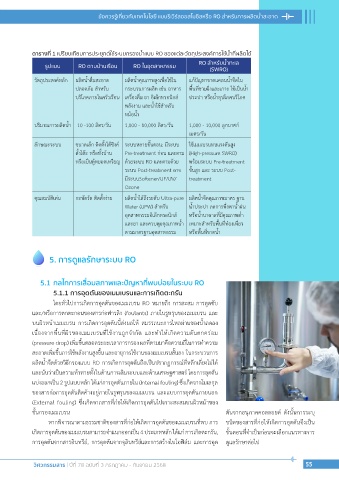 ตารางที่ 1 เปรียบเทียบการประยุกต์ใช้ระบบกรองน�้าแบบ RO ของแต่ละวัตถุประสงค์การใช้น�้าที่ผลิตได้